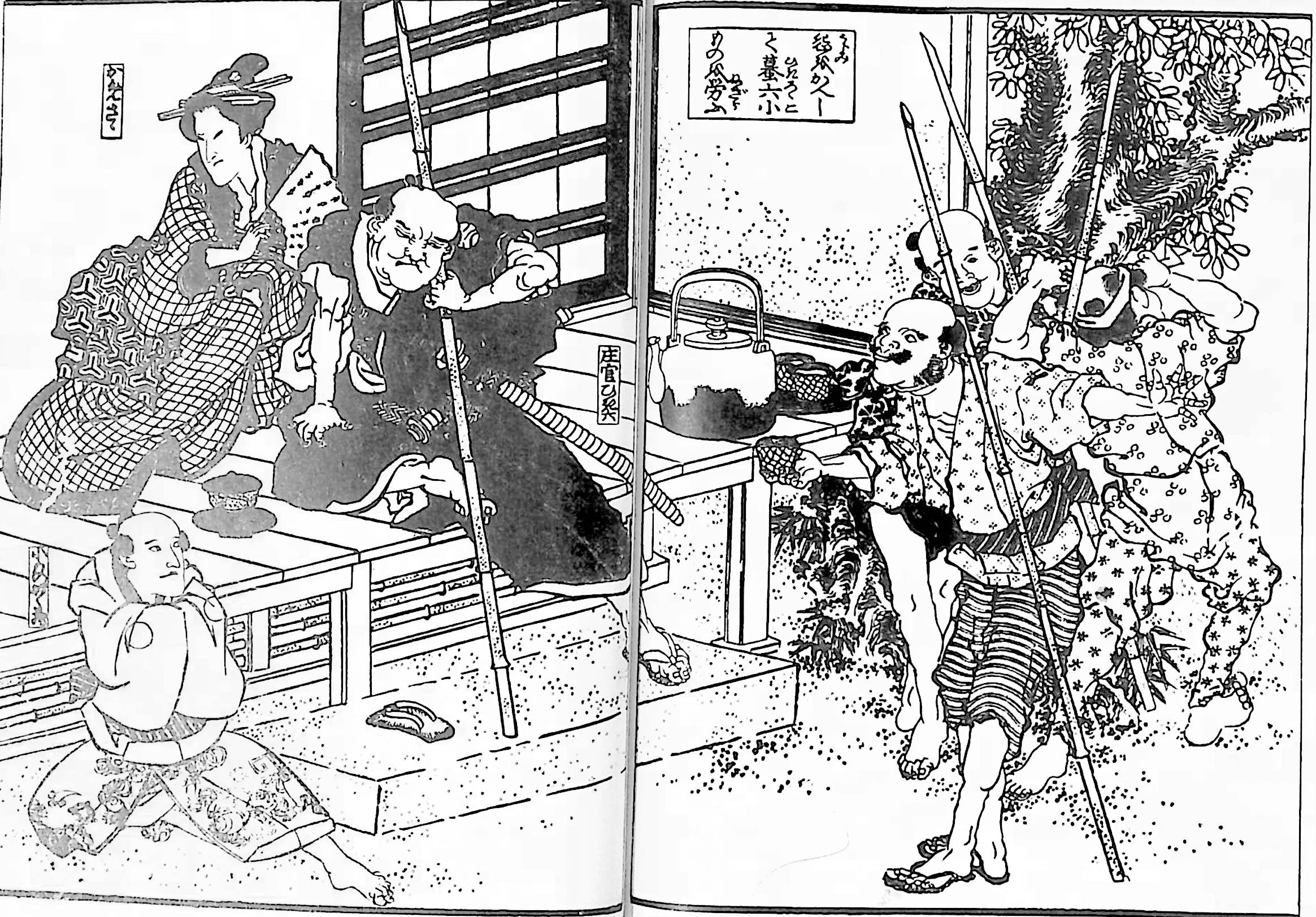 怨をかへして蟇六小ものを勞ふ」「庄官ひき六」「かめさゝ」「小ものがく蔵」